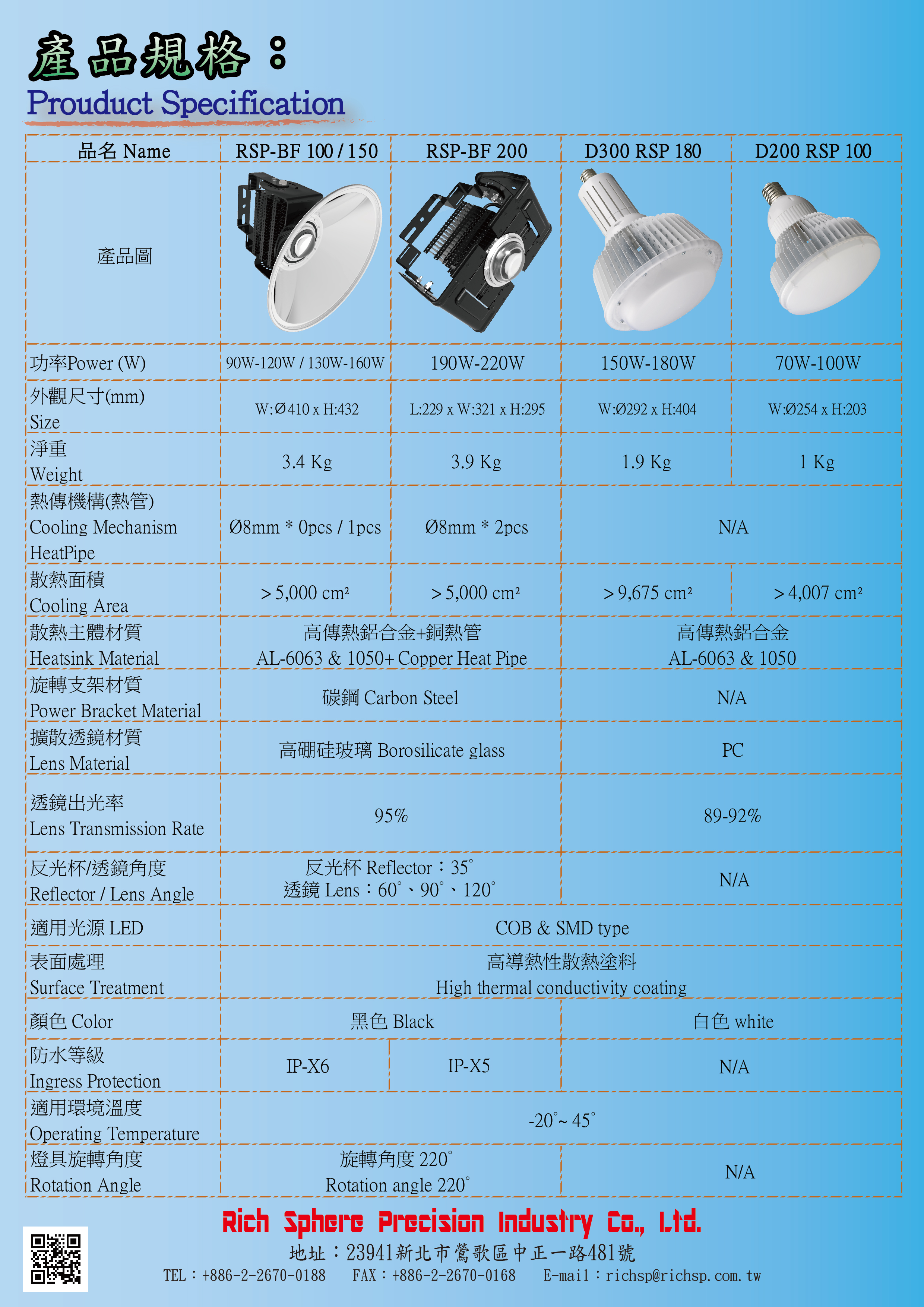 Now, RSP is mainly making the LED related products, and it has fully ranges of products , from Small Mr16, Par30, Par38, Ar111. and for the small high bay 50W to big high bay 600W heat-sink. RSP has positioned our-self as professional thermal solution provider.